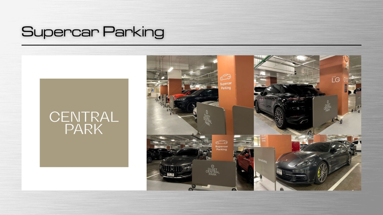 ที่จอดรถพิเศษ Supercar Parking ตอนนี้นับเป็นอีกหนึ่งสิ่งอำนวยความสะดวกที่ตอบโจทย์ไลฟ์สไตล์ของผู้ที่ใช้รถหรูในประเทศไทย เกิดขึ้นทั้งในห้างสรรพสินค้า หรือลานพบปะ ที่มีเพิ่มมากขึ้นมากกว่า 50 แห่งทั่วประเทศ และสิ่งนี้จะเป็นอีกหนึ่งจุดหมายที่น่าสนใจสำหรับผู้ที่อยากใช้รถหรู ซูเพอร์คาร์ ที่ต้องการใช้บริการห้างสรรพสินค้าในวันพักผ่อนได้อย่างเต็มที่โดยไม่มีความกังวลใดๆ ในการจอดรถ