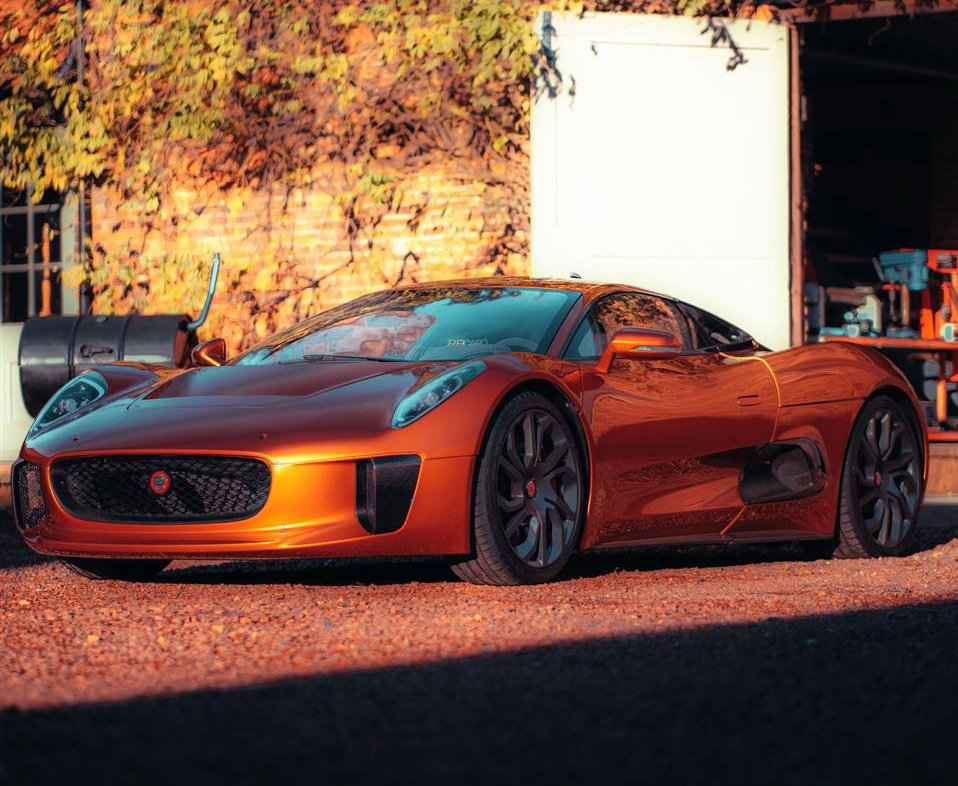 C‑X75 คันสีส้มนี้ ตั้งขายโดยทาง Simon Drabble Cars มากับหมายเลขแซสซีส์ 007 มันคือ 1 ใน 7 คัน ที่ถูกสร้างขึ้นสำหรับหนัง Spectre โดยเฉพาะ หน้าตาภายนอกสวยล้ำไม่ต่างจากตัวต้นแบบ แต่มีการปรับปรุงโครงสร้างตัวถังกับระบบช่วงล่างให้แข็งแกร่งเป็นพิเศษ สเปคเดียวกับรถแข่งแรลลี่ WRC ภายในห้องโดยสารดูดิบๆ หน่อย ใส่พวงมาลัย momo มาตรวัดแบบรถแข่ง เบาะ bucket seats ส่วนเครื่องยนต์ไม่เหมือนตัวต้นแบบ จะใช้เครื่อง V8 ซุปเปอร์ชาร์จ ขนาด 5.0 ลิตร ขับเคลื่อนแทน