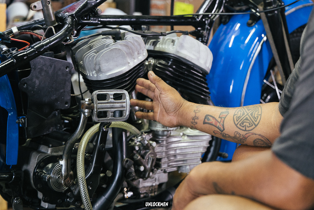 “10 กว่าปีที่แล้ว ผมเล่นรถอังกฤษ ผมทำมันเสร็จทุกอย่างจนไม่รู้จะทำอะไรกับมันแล้ว ขี่ไปเยอะมาก ผมก็มีความคิดว่าอยากจะได้รถเพิ่ม แต่อยากได้อีกฟีลนึง จริง ๆ ผมอยากได้ Triumph นั่นแหละ แต่เทียบกับ Norton ก็คล้าย ๆ กันเพราะเครื่องยนต์การทำงานมันคล้าย ๆ กัน ทีนี้จะไป BMW ในยุคนั้นก็ค่อนข้างจะแพง ก็เลยไม่เอาดีกว่า ก็มาคิดว่ามา Harley ดีกว่าเพราะเครื่อง, เกียร์, คลัทช์ มันแยกเหมือนรถอังกฤษทุกอย่างเลย