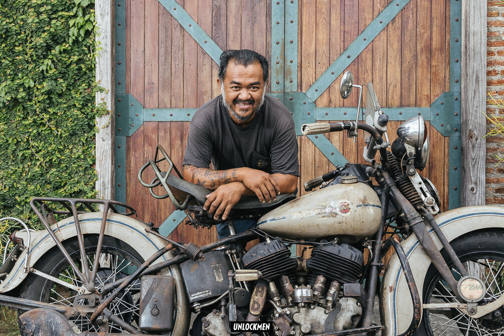 “ก่อนจะรู้จักโอ้ โอ้เขาเล่นรถเก่าอยู่แล้วเนอะ เล่นพวก vespa รถโฟล์กอะไรพวกนี้ แล้วก็มาขี่ Harley ใหม่ แต่เขาคงอยากได้ Harley เก่า แล้วมีวันหนึ่งเขามาฟอลไอจีผม ผมก็ฟอลกลับแต่ไม่ได้คุยอะไรกัน