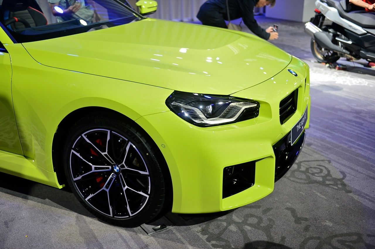 M2 มีให้เลือกเป็นเจ้าของได้ใน 8 สี ได้แก่น้ำเงิน Zandvoort Blue Solid, ขาว Alpine White Solid, เหลือง Sao Paulo Yellow Solid, แดง Fire Red Metallic, เทา Skyscraper Grey Metallic, เทา Brooklyn Grey Metallic, น้ำเงิน Portimao Blue Metallic และดำ Black Sapphire Metallic ส่วนรุ่นพิเศษ M Racetrack มีให้เลือก 5 สีด้วยกัน ได้แก่ น้ำเงิน Zandvoort Blue Solid, ขาว Alpine White Solid, เหลือง Sao Paulo Yellow Solid, แดง Fire Red Metallic และเทา Skyscraper Grey Metallic พร้อมเบาะหนัง Merino แต่งไฮไลท์สีดำ เอ็กซ์คลูซีฟ